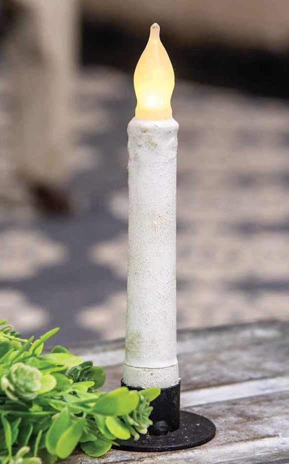 Cement look taper operates with two AA batteries (not included). Measuring 6” high, it has a cement-like finish and color that gives it a classic look.