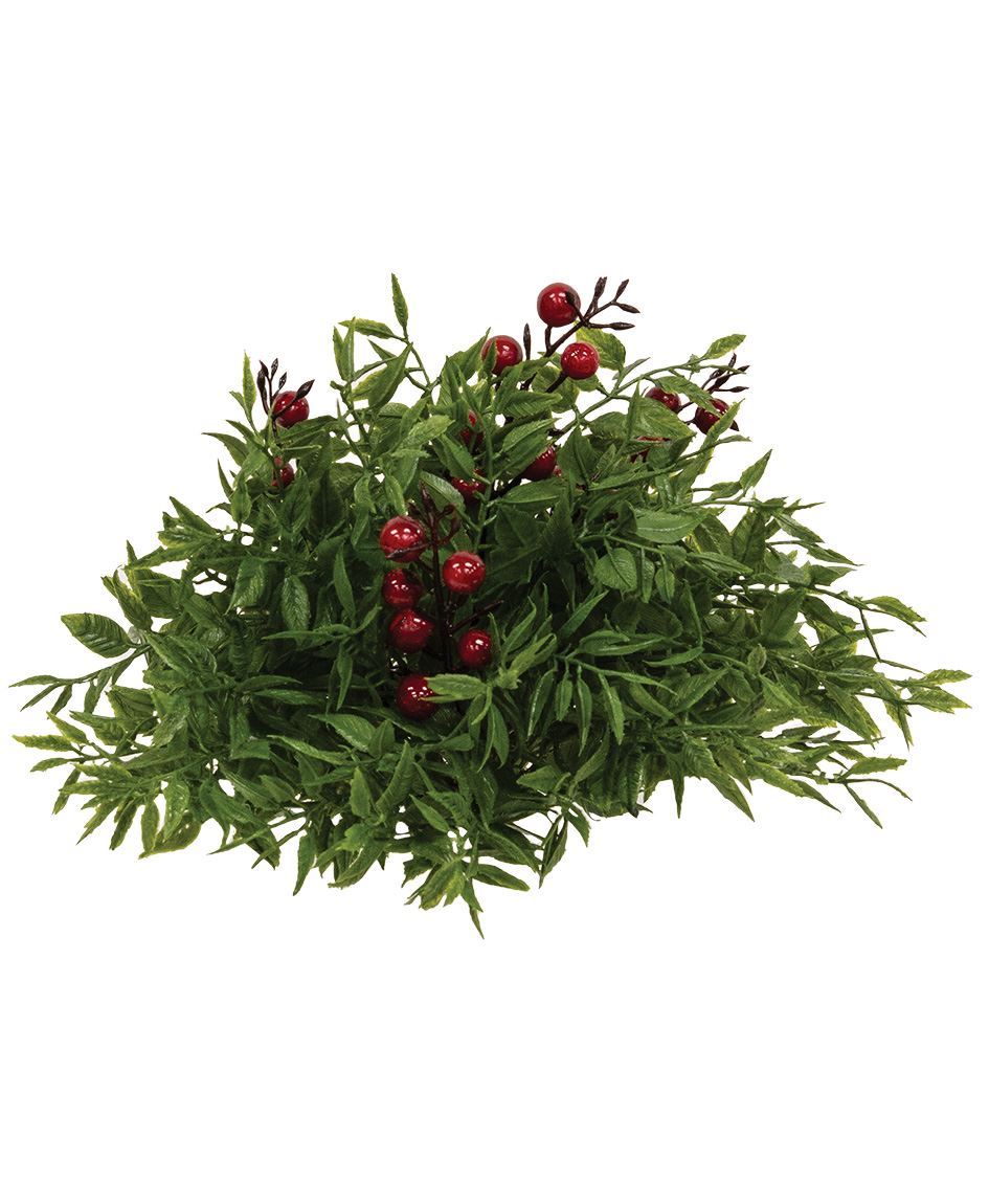 Fill up baskets and containers for the farmhouse this Winter season with the Lady Ruscus & Berries 6.6" Half Sphere. This pretty rounded artificial floral is created with an abundance of small, pointed leaves and dark stems with lush red berries. Pair with candles in a basket for an easy, festive display.