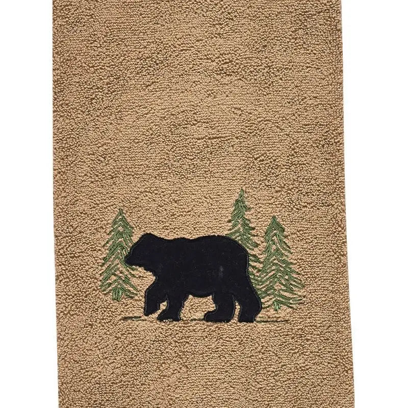 Black bear pattern hand towel has thick, tightly woven loops for better drying and greater durability. Made with soft, absorbent 100% cotton. Machine wash cold, tumble dry.