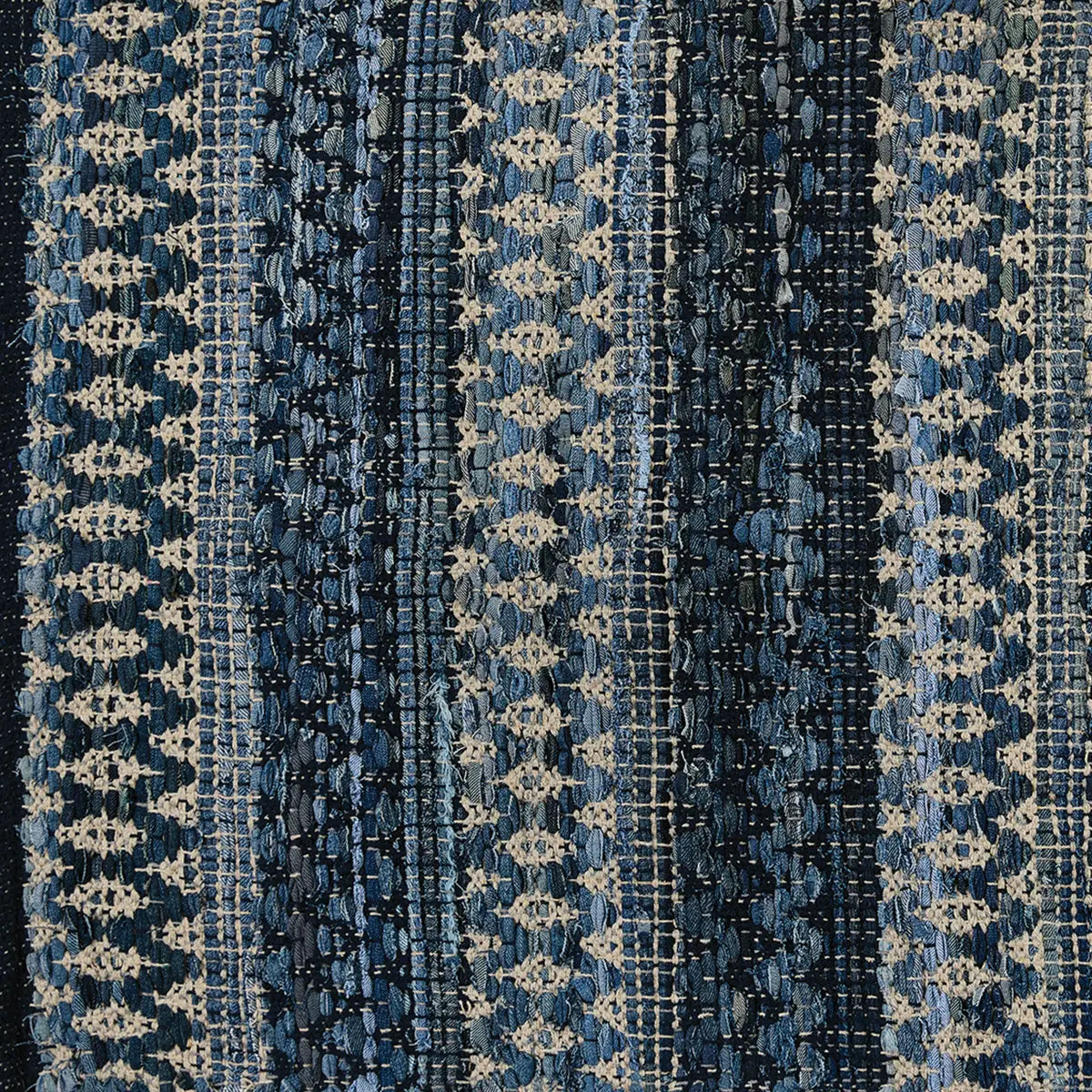 By Park Designs. Dressed up Denim Rug Chindi style rag rug adds a touch of rustic charm to your home in beautiful shades of blue and cream. Measuring 24” x 38” this rug is handwoven from recycled fabric making each piece is unique. Bring a blend of texture, color, and artisanal character to your home.