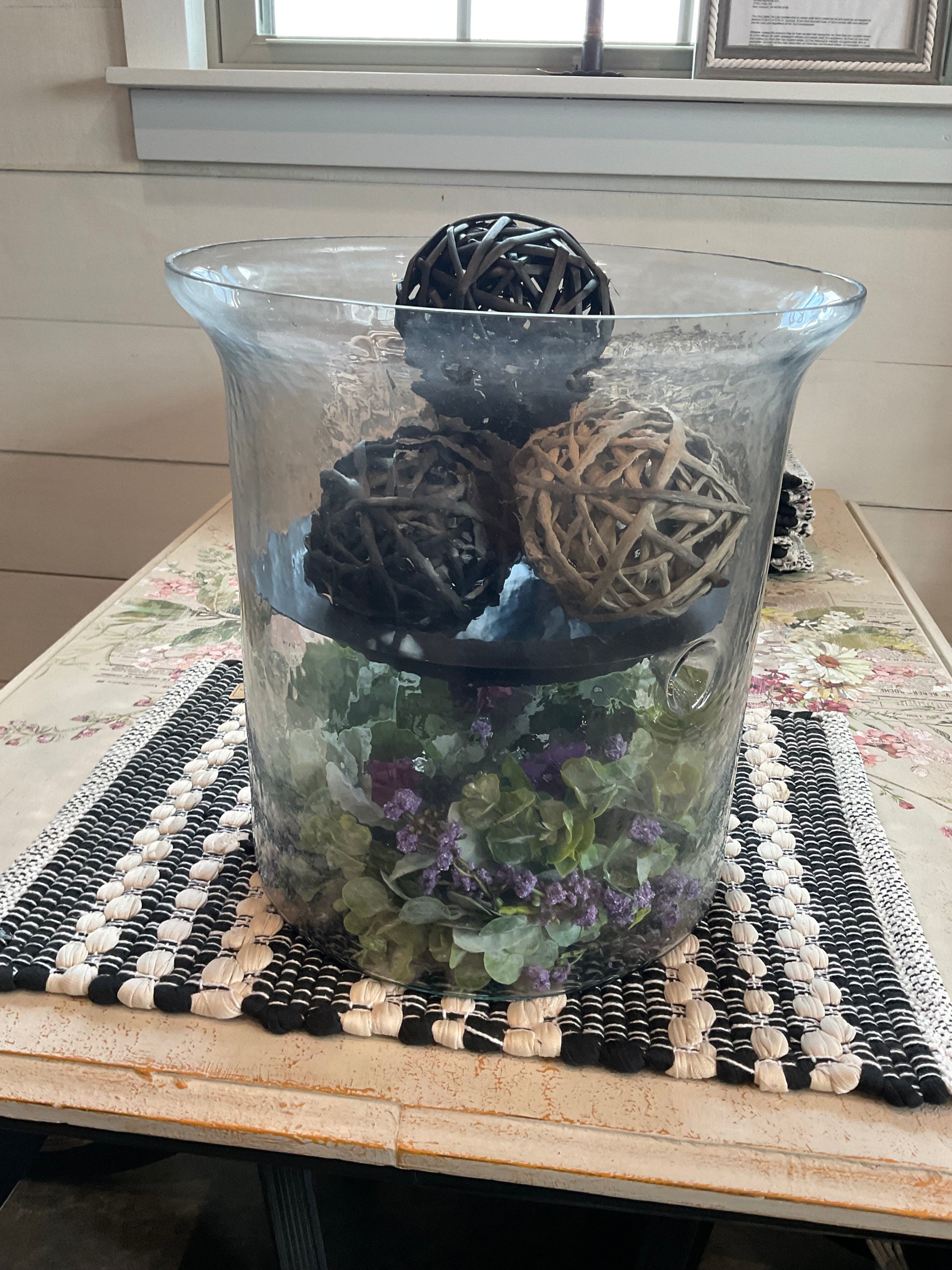 The large size with hammered finish makes a versatile centerpiece, table or mantle accent. Can hold three standard pillars.